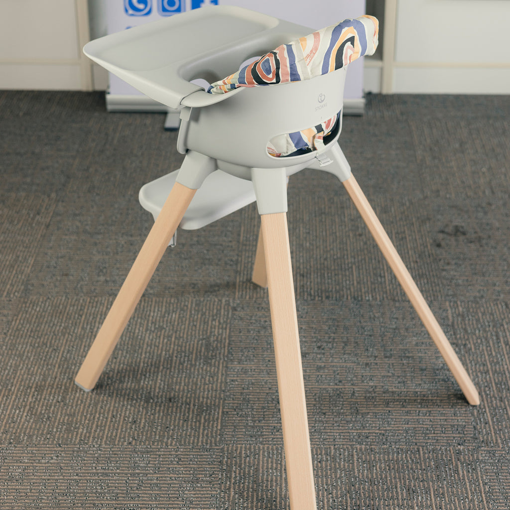 The Stokke Clikk highchair is designed to make family mealtimes effortless, fun, and travel-friendly, whether you’re at home or on the go. With its sleek, all in one design, it includes everything you need: high chair, tray, cushion and harness, and assembles tool free in seconds, so you can focus on enjoying moments with your little one. Lightweight and easy to transport in its very own travel bag, it’s perfect for adventures while still offering ergonomic comfort for children from 6 months to 3 years. The smooth surfaces wipe clean in a snap, the tray is dishwasher safe, and the removable, machine washable harness ensures hygiene is easy peasy. Adjustable seating and a two position footrest for whatever stage your child is at, making every meal a cozy and joyful experience anywhere you go!